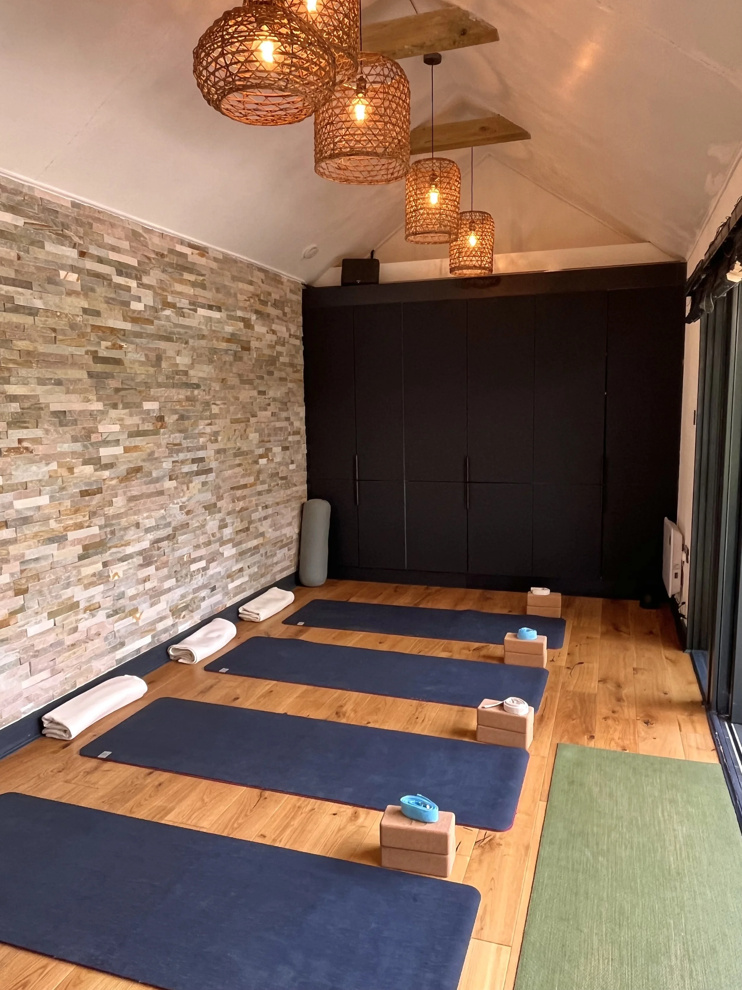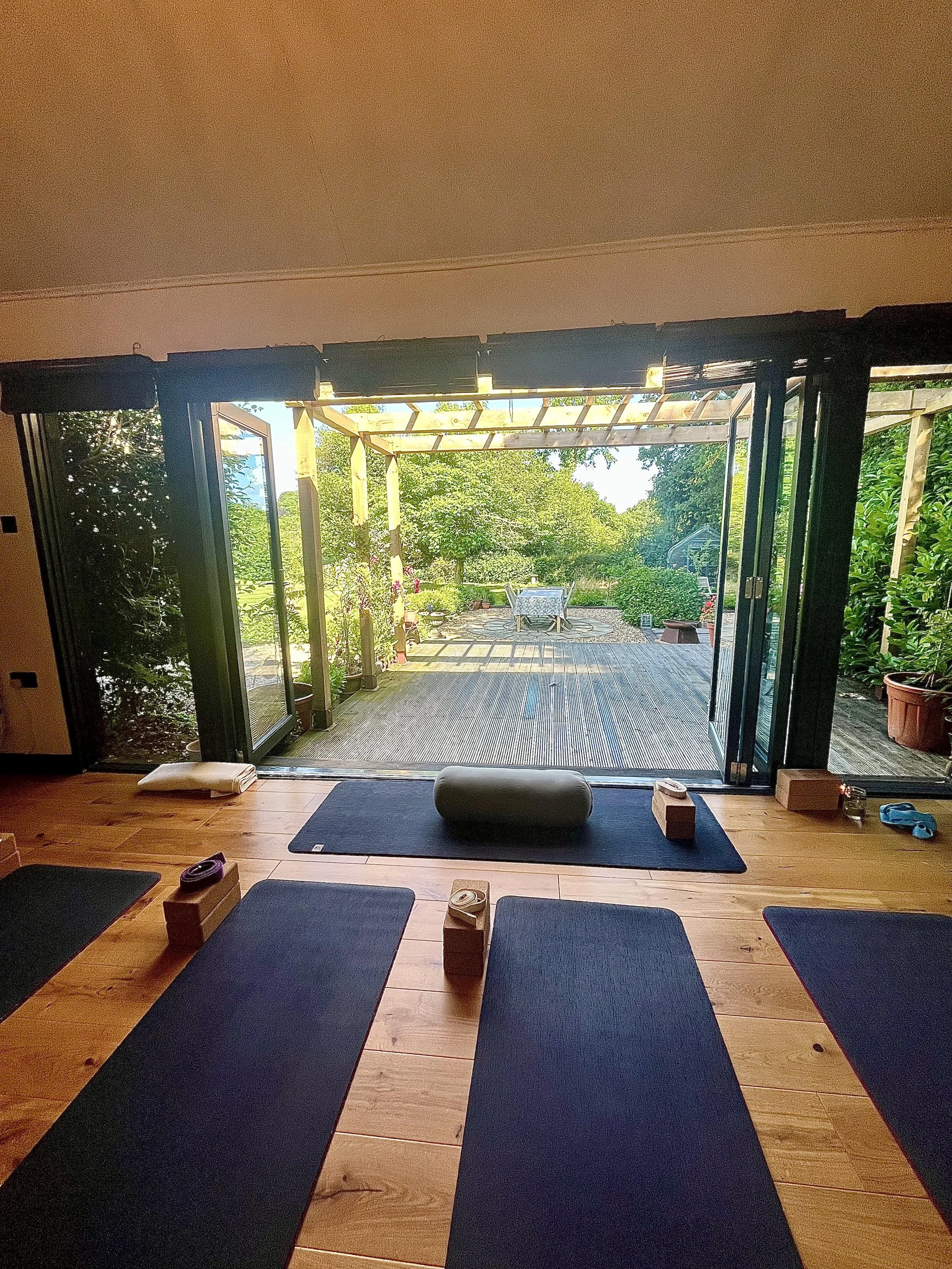 Step into our solar-powered yoga cabin where natural light fills the space, creating a warm and peaceful atmosphere. Built with a restorative philosophy (originally a 1960’s timber workshop) and using largely sustainable materials, the cabin embodies our commitment to environmental responsibility. EV drivers can charge while sun saluting (via www.co-charger.com). Nestled in the East Sussex countryside, our yoga cabin offers stunning views over the surrounding hills, forests, and fields, inviting you to connect with nature as you practice yoga.